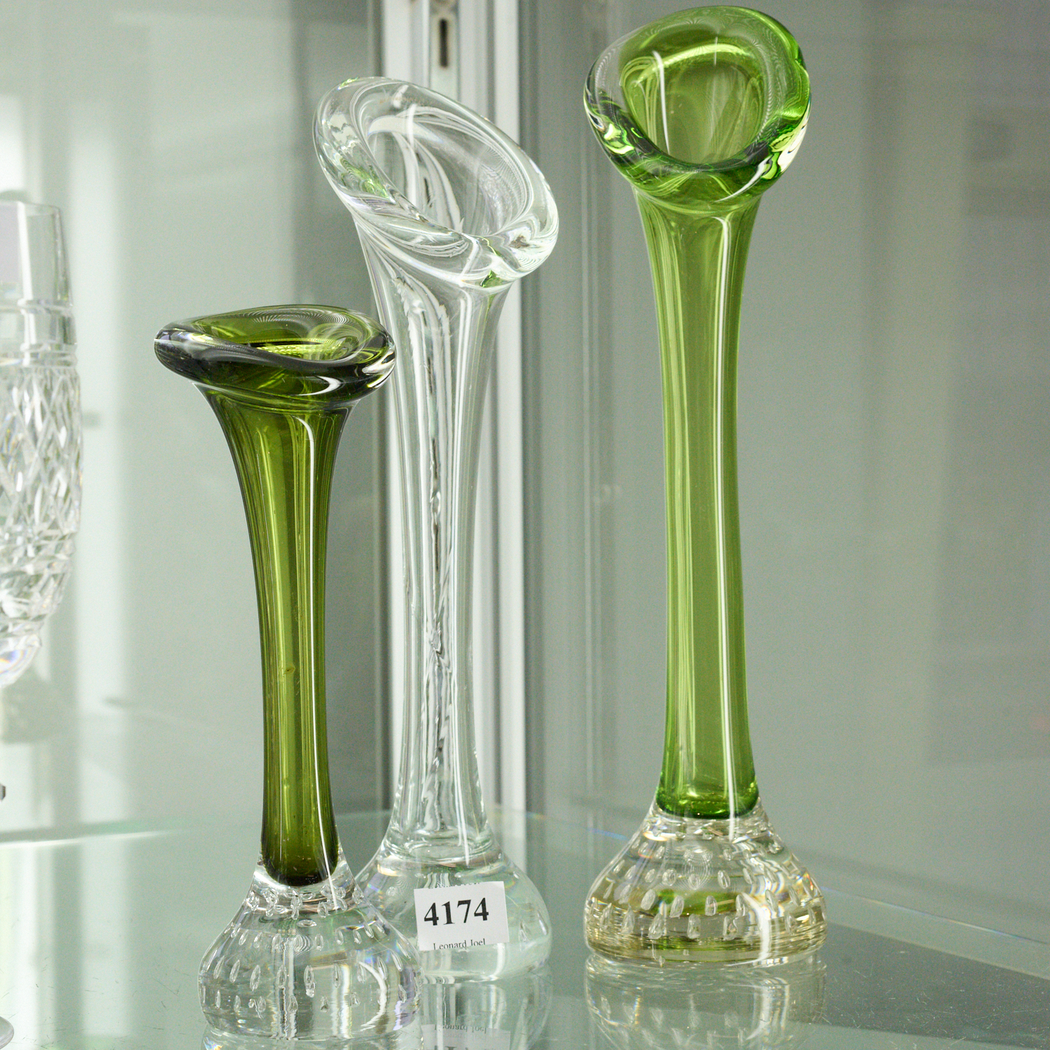 THREE SWEDISH ASEDA JACK IN THE PULPIT VASES (28CM HIGHEST), LEONARD JOEL LOCAL DELIVERY SIZE: SMALL
