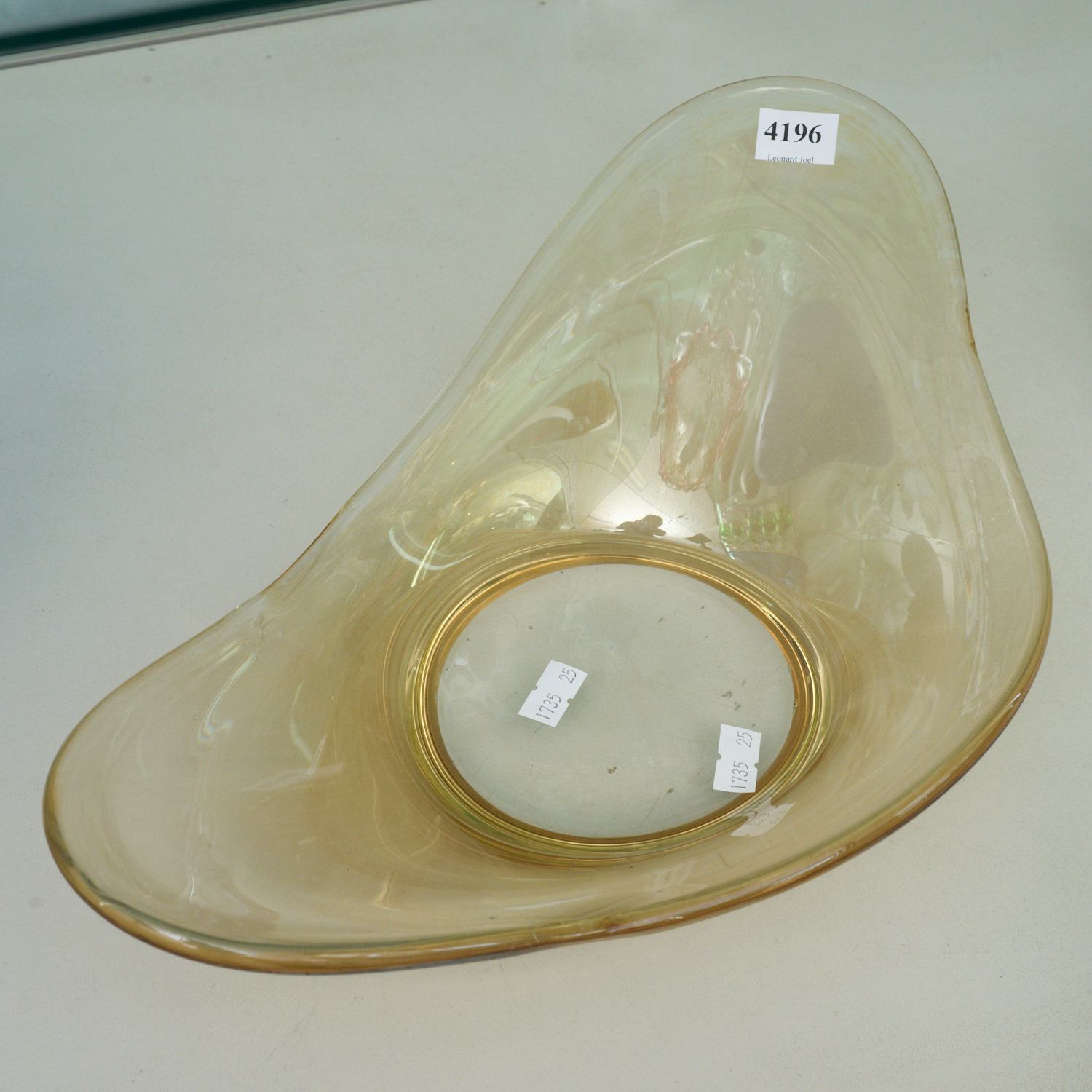 A MID-CENTURY ORGANIC SHAPED YELLOW GLASS BOWL (39CM), LEONARD JOEL LOCAL DELIVERY SIZE: SMALL