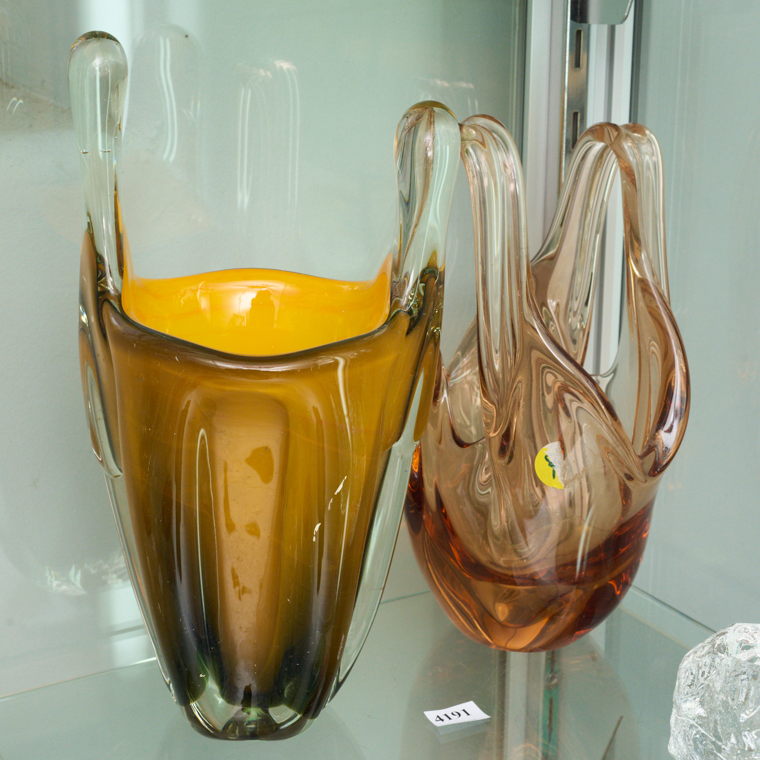 TWO ART GLASS VASES H.32CM, LEONARD JOEL LOCAL DELIVERY SIZE: SMALL