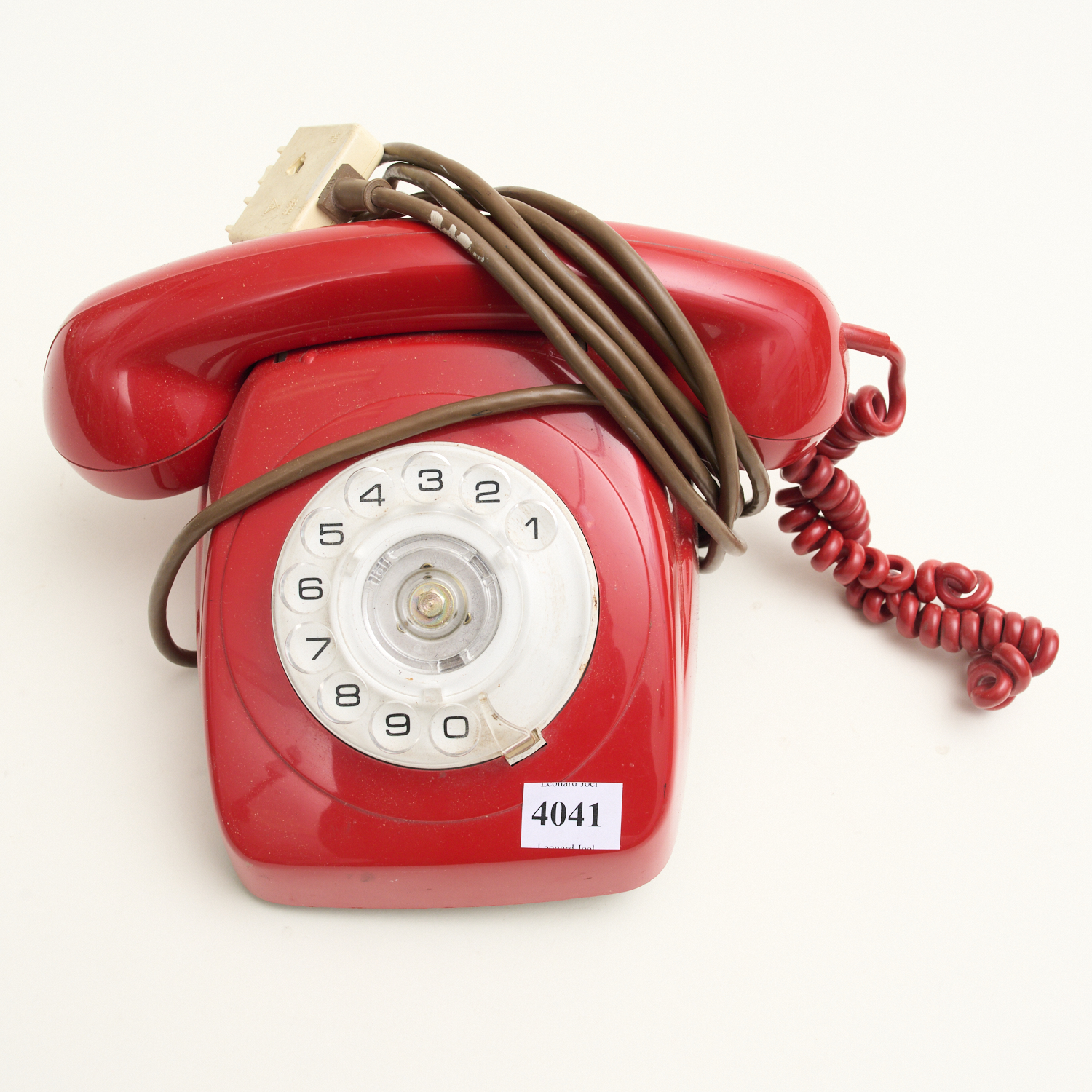 A RED ROTARY TELEPHONE, LEONARD JOEL LOCAL DELIVERY SIZE: SMALL