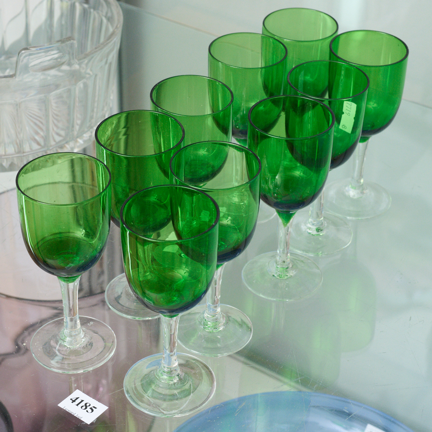 A SET OF TEN GREEN GLASSES, LEONARD JOEL LOCAL DELIVERY SIZE: SMALL