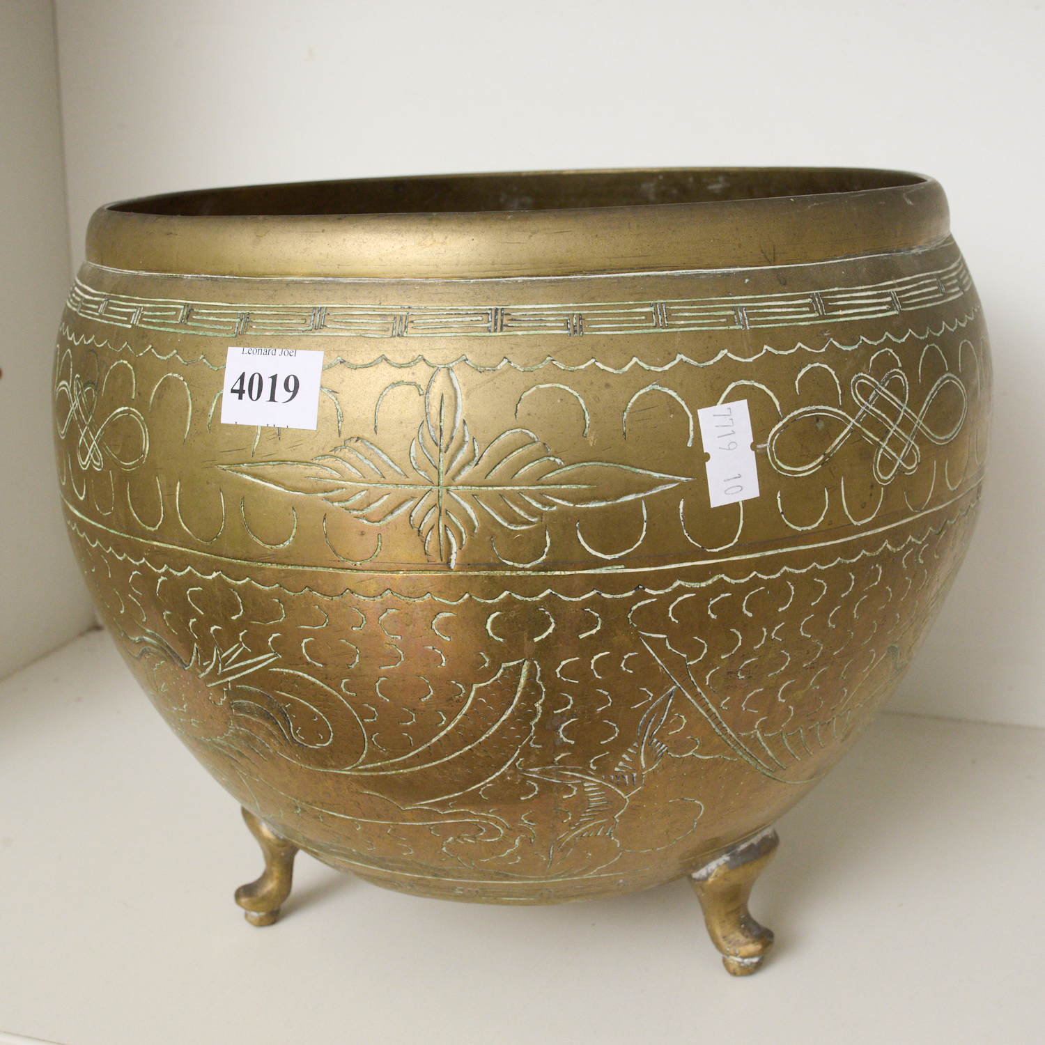 A BRASS PLANTER H.23CM, DIA.24CM, LEONARD JOEL LOCAL DELIVERY SIZE: SMALL