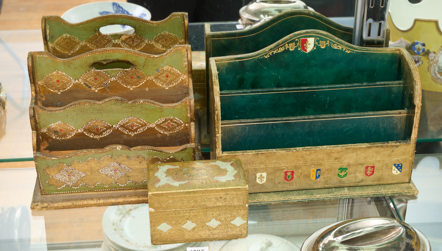 TWO ITALIAN LETTER HOLDERS TOGETHER WITH TRINKET BOX, LEONARD JOEL LOCAL DELIVERY SIZE: SMALL