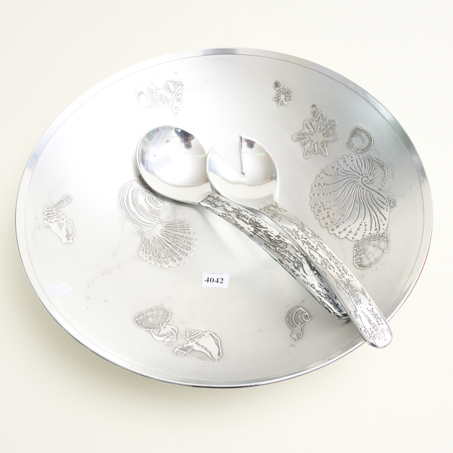 LARGE DON SHEIL BOWL AND SALAD SERVERS DIA.38CM, LEONARD JOEL LOCAL DELIVERY SIZE: SMALL
