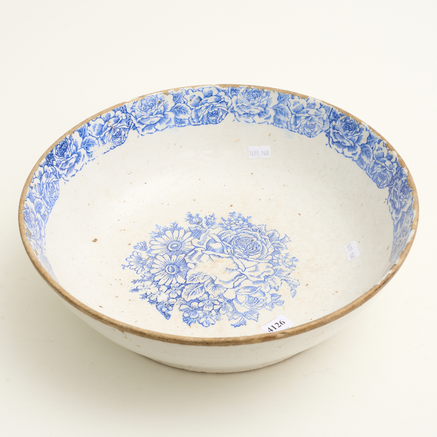 A BLUE AND WHITE FLORAL BOWL DIA.34CM, LEONARD JOEL LOCAL DELIVERY SIZE: SMALL. The Rodney Permezel Collection