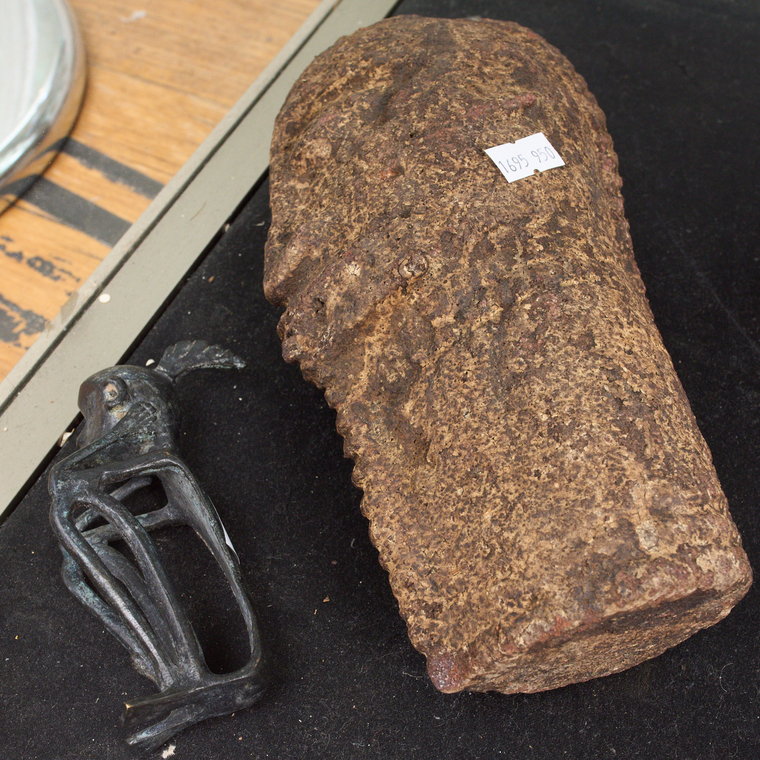 AFRICAN BRONZE TOGETHER WITH MELANESIAN CARVED HEAD H.24CM, LEONARD JOEL LOCAL DELIVERY SIZE: SMALL. The Rodney Permezel Collection