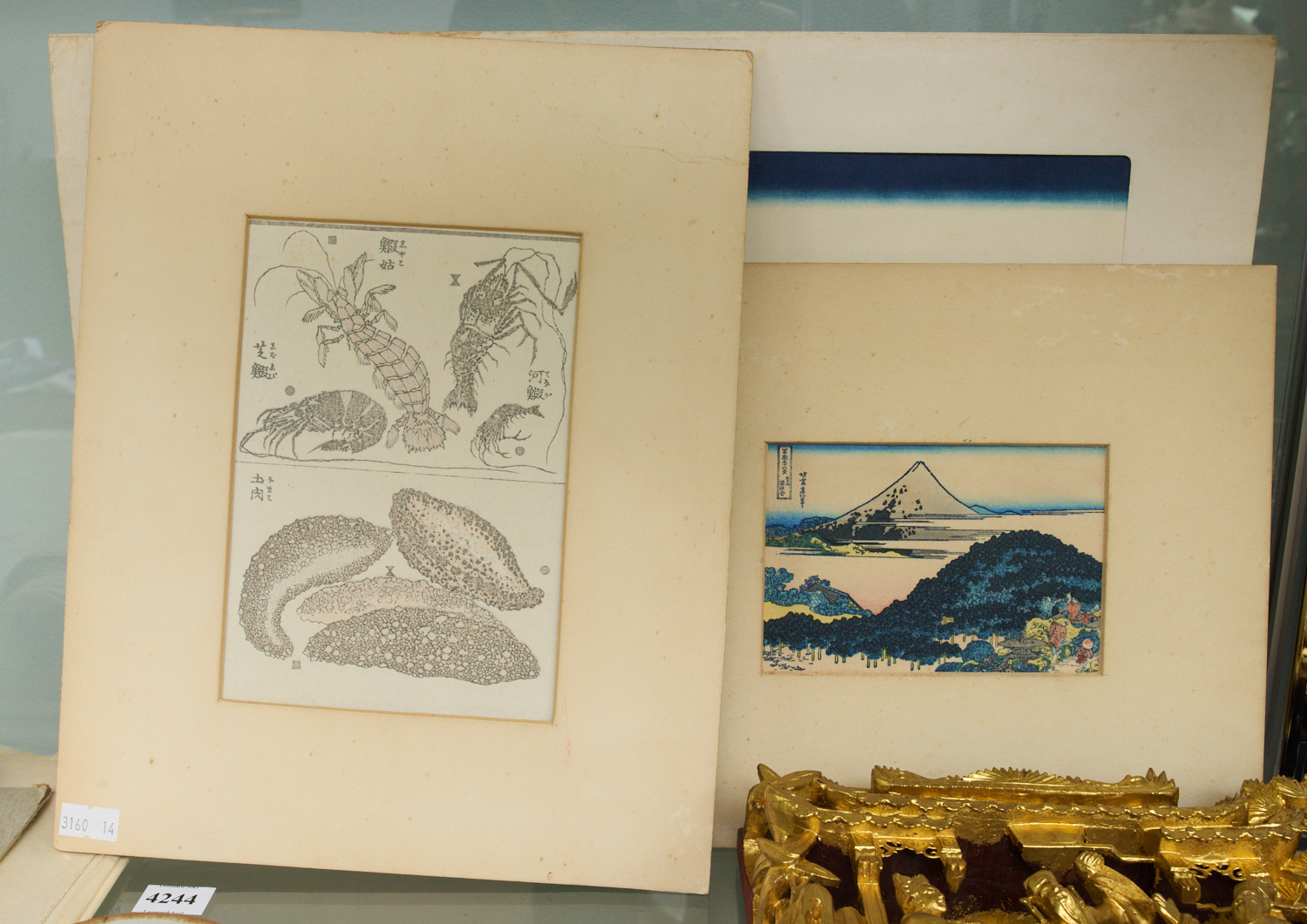 FOUR HOKUSAI PRINTS INCLUDING 36 VIEWS OF FUJI W.45CM X 30CM (LARGEST), LEONARD JOEL LOCAL DELIVERY SIZE: SMALL