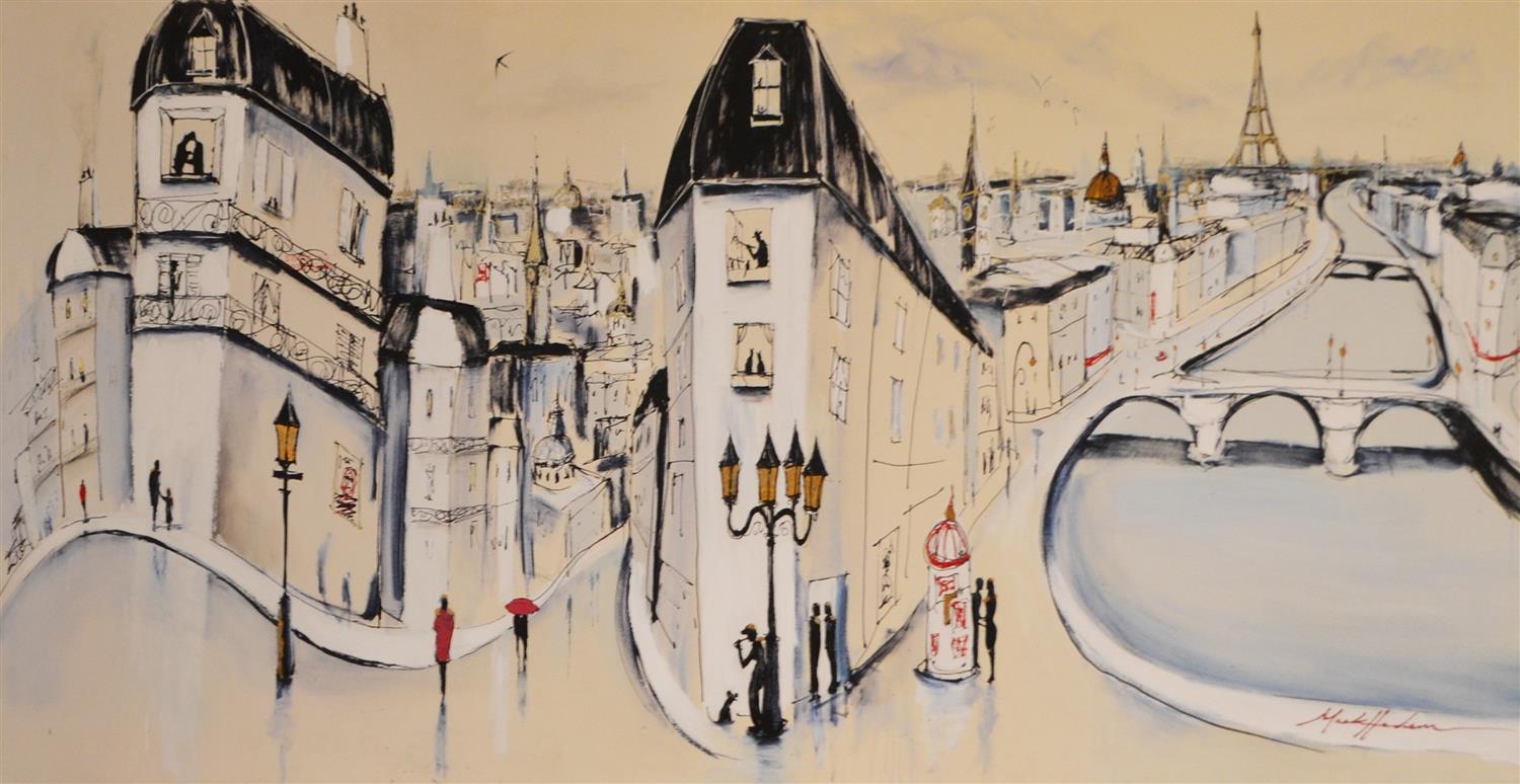 MARK HANHAM, PARIS AMOUR XII, MIXED MEDIA ON CANVAS, 90 X 200CM