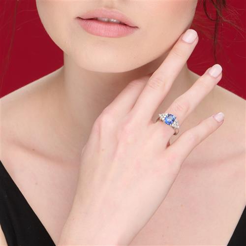 Sapphire of strong to medium saturation of even colour and good brilliance, abrasion to table facets observed with 10x magnification