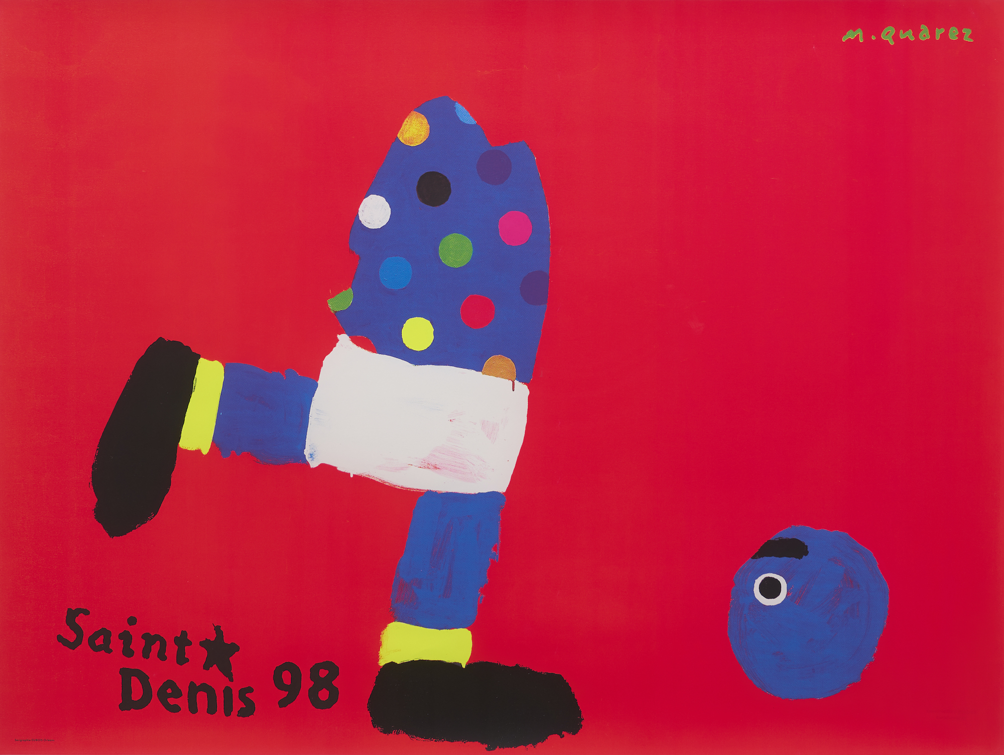 Printed in 1998, it was created to advertise the 1998 World Cup. This poster represents how a soccer fan loses their head when supporting and watching football.