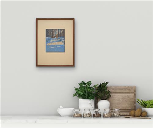 Work in good condition. A light bump in the paper is present in the mid right hand side. Work is well framed with overall size 48 x 38cm. Please note, this artwork has not been inspected out of the frame.