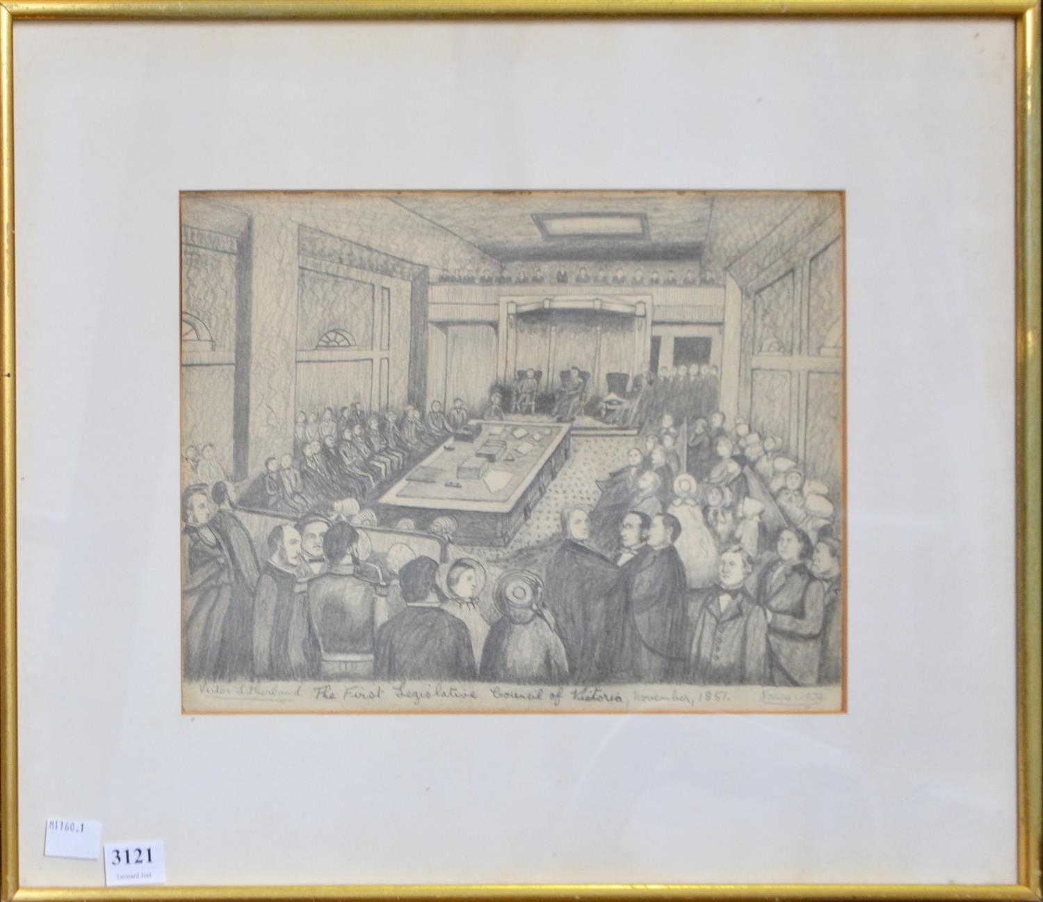 VICTOR LITHERLAND, THE FIRST LEGISLATIVE COUNCIL OF VICTORIA, PENCIL ON PAPER, 21 X 29CM