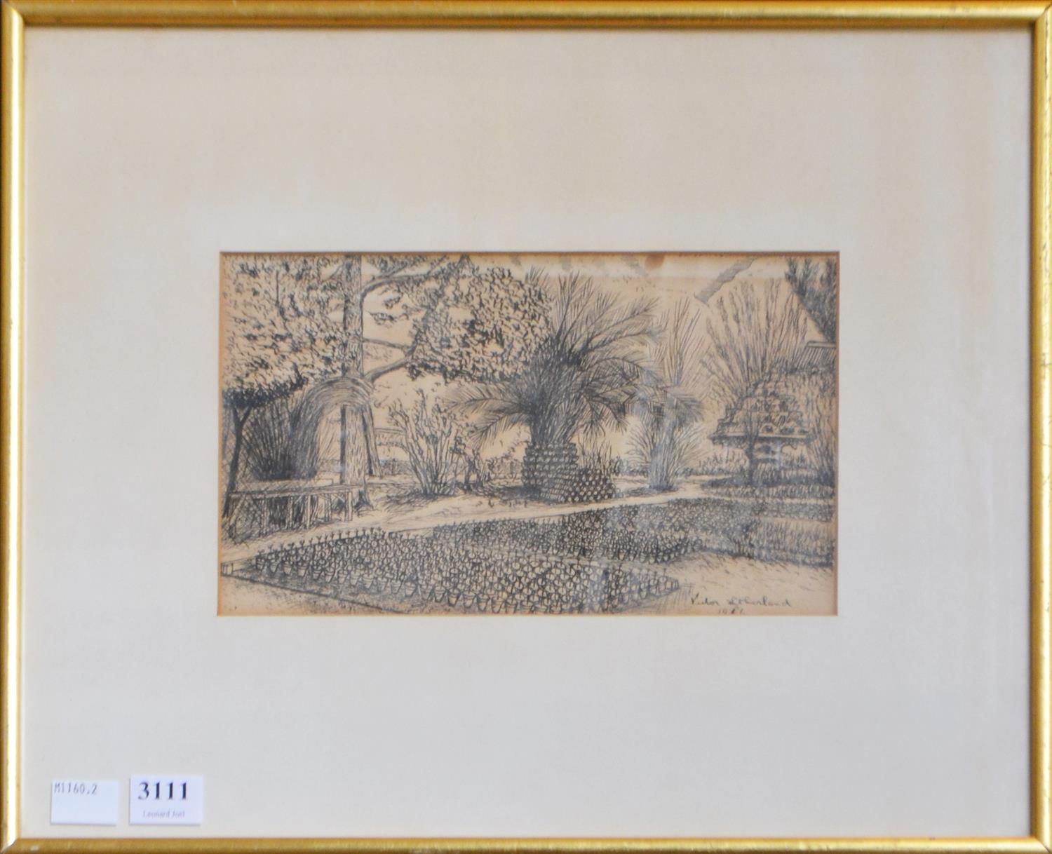 VICTOR LITHERLAND, PLANT NURSERY, PEN AND INK, 13 X 22CM