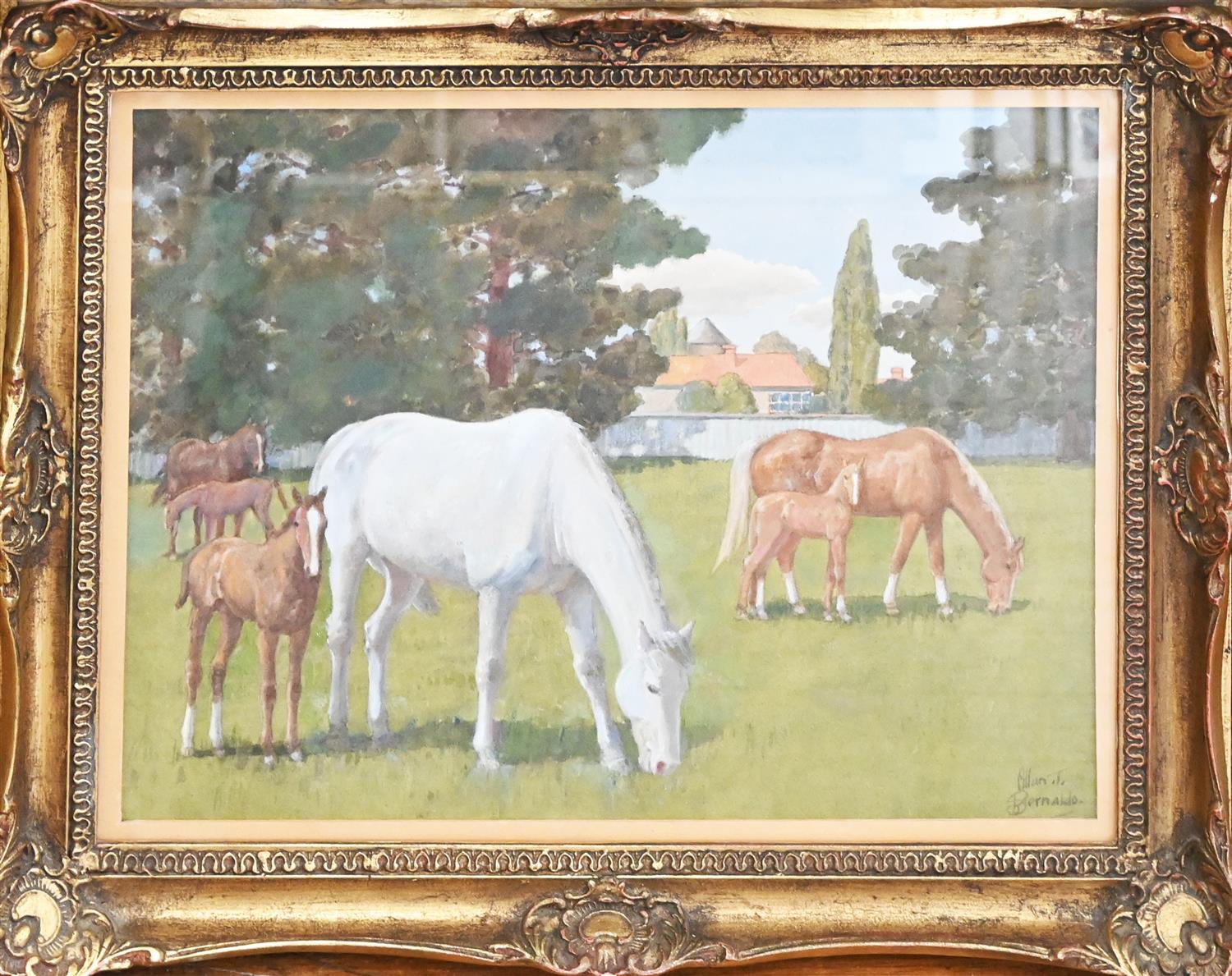 ALLAN T. BERNALDO, THE STUD FARM 1983, WATERCOLOUR, 35 X 46.5CM