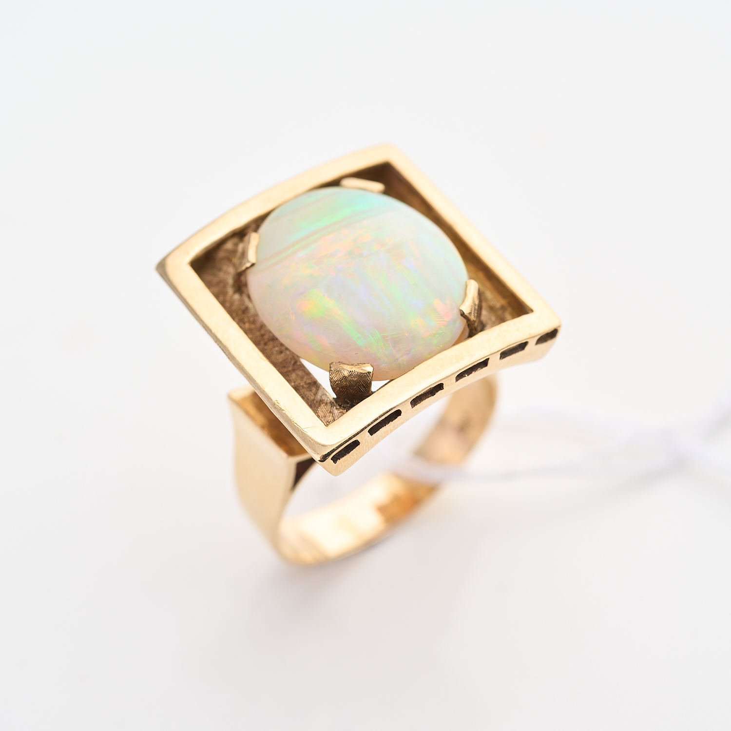 AN OPAL SET DRESS RING IN 9CT GOLD, RING SIZE P, 8.0GMS