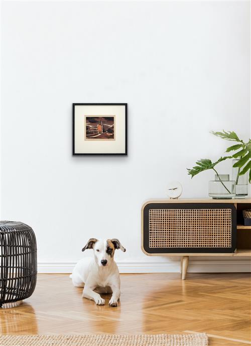 Work in good condition with some handling marks present in the lower margin of the paper. There is some dust attatched to the surface of the print, however appears to have settled on the ink while drying (therefor occurred during production). Well framed, measuring 49 x 53cm. Please note, this artwork has not been inspected out of the frame.