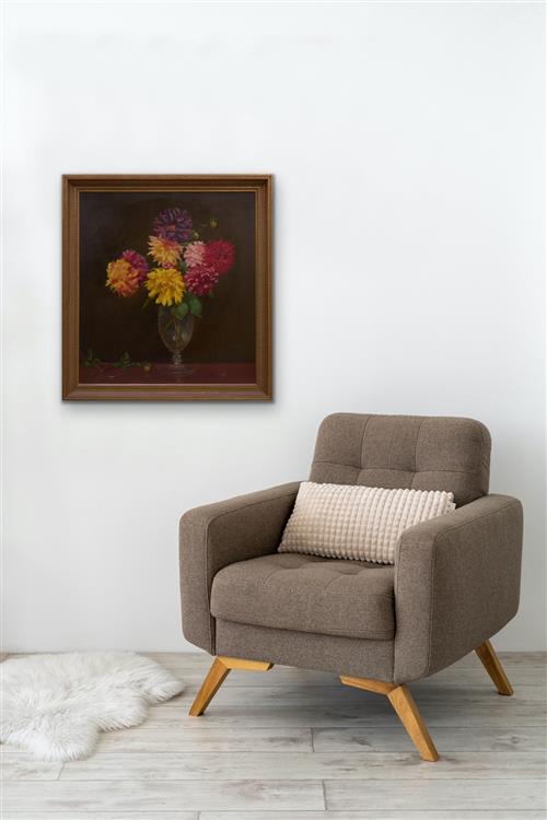 Very good condition overall. Some light wear to the upper right corner. The work is housed in a modern frame, overall size measuring 84 x 79cm.