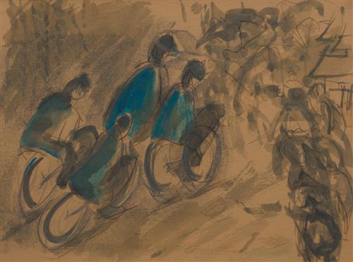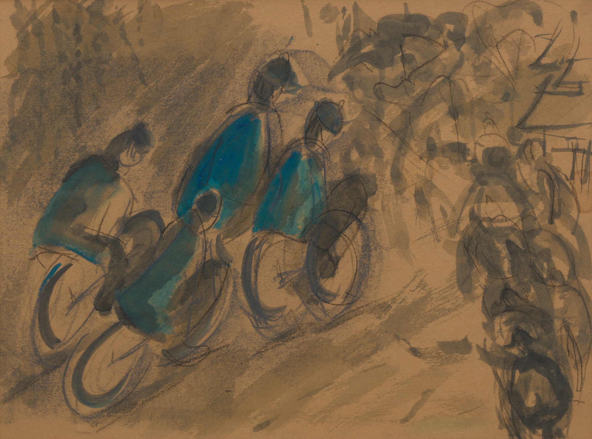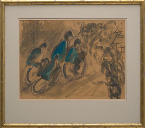 Overall in good condition, consistent with age. The work displays minor discolouration throughout with a brown liquid mark lower edge. Frame measuring 54 x 62cm.