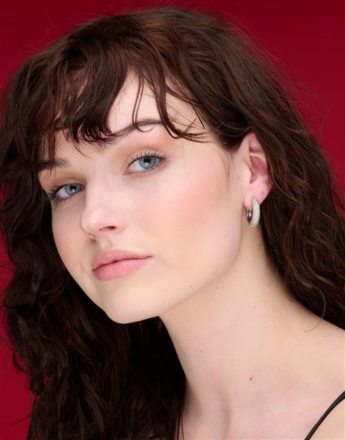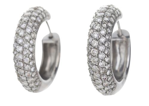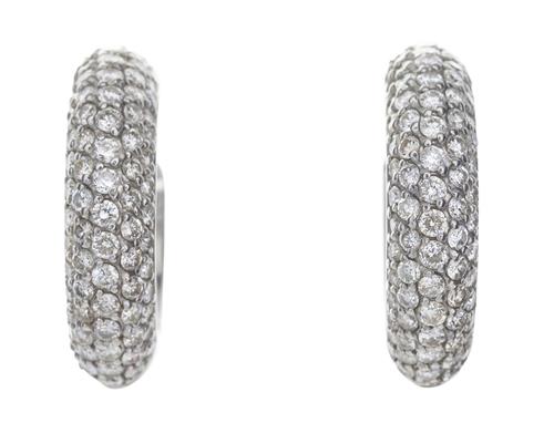 Each round hoop earring pavé-set with round brilliant-cut diamonds together weighing approximately 1.00 carats, to post fittings, length 16mm.