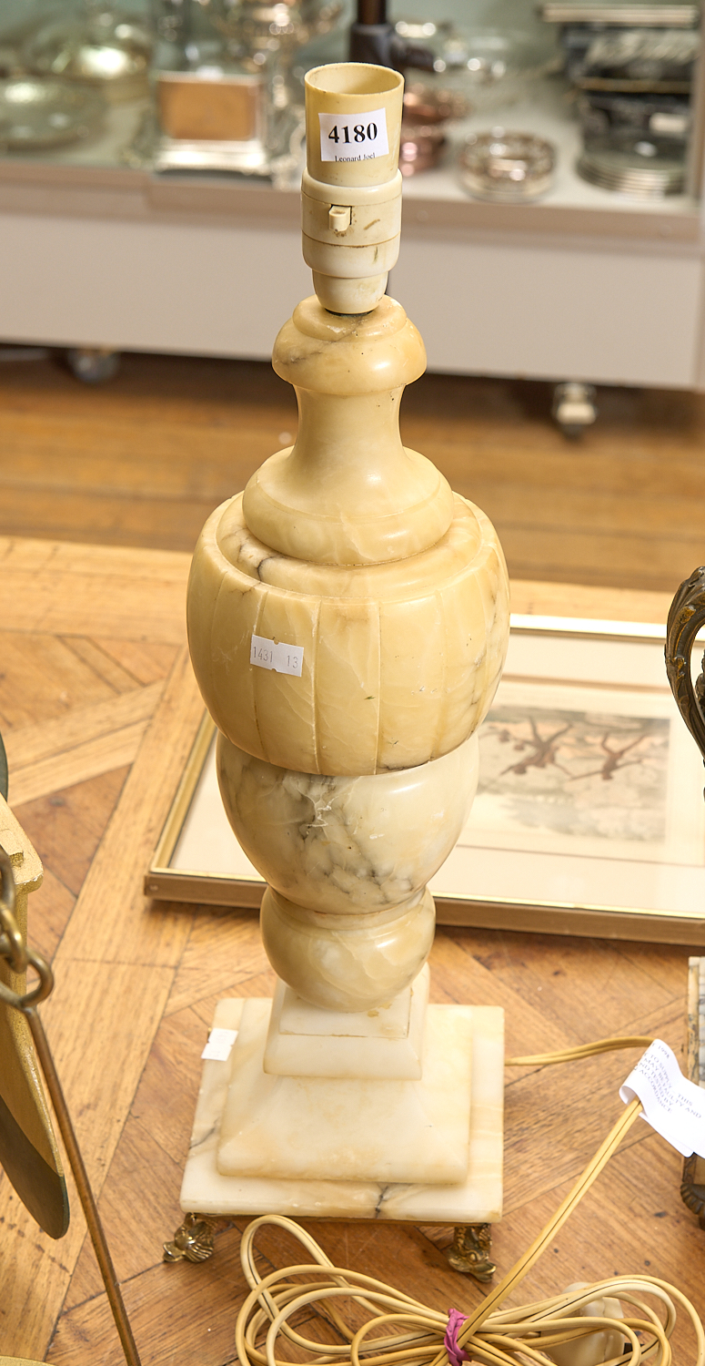 AN ALABASTER LAMP WITH DOLPHIN FORM BRONZE FEET H.52CM, LEONARD JOEL LOCAL DELIVERY SIZE: MEDIUM