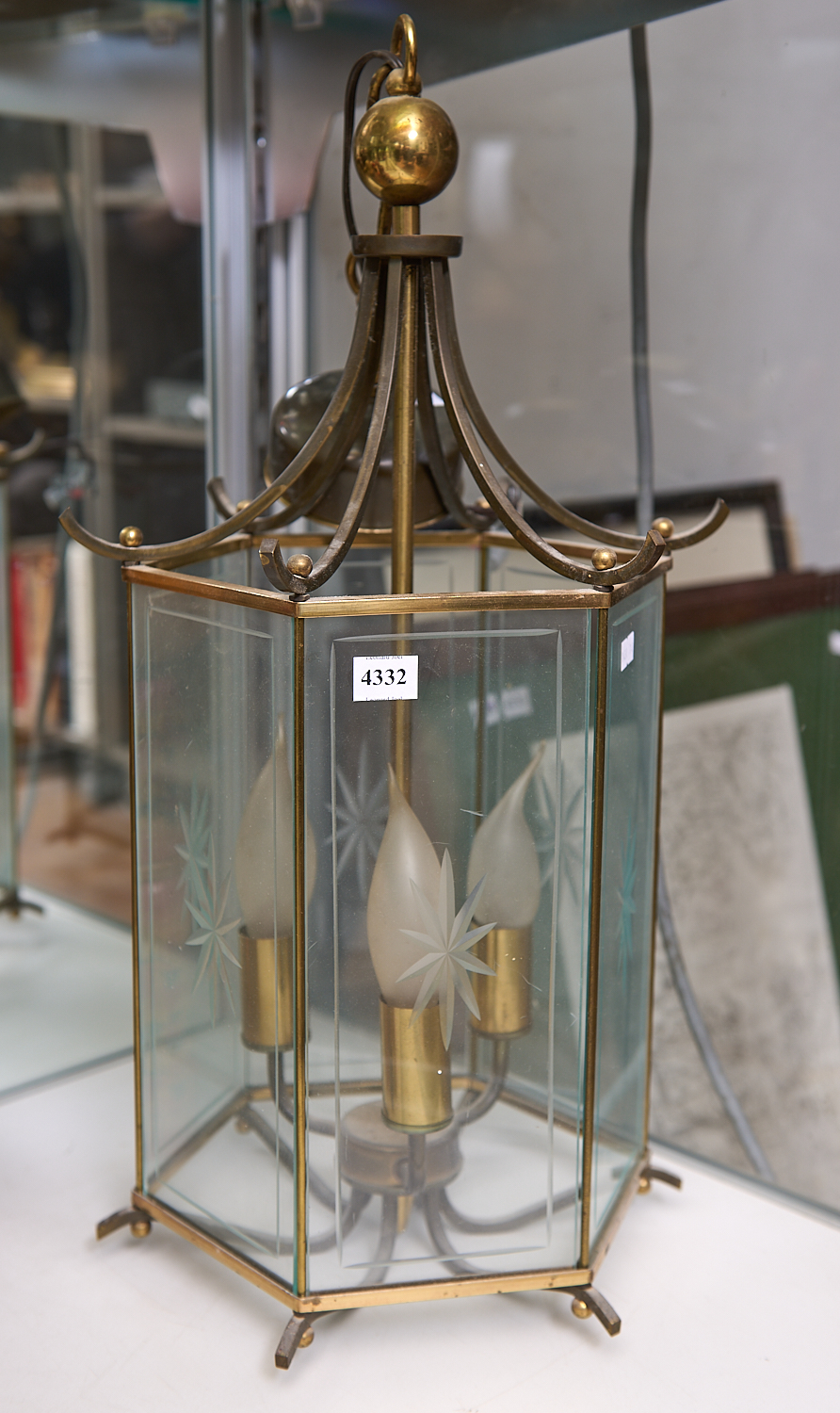 A LARGE BRASS AND GLASS PAGODA LANTERN H.57CM, LEONARD JOEL LOCAL DELIVERY SIZE: MEDIUM