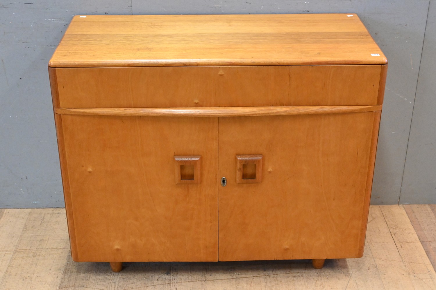 A SMALL SIDEBOARD BY HUNT, SON & OLIVER, C 1952 (85H x 107W x 49D CM) (PLEASE NOTE THIS HEAVY ITEM MUST BE REMOVED BY CARRIERS AT THE CUSTOMER'S EXPENSE. LEONARD JOEL STAFF CANNOT ASSIST CARRYING THIS ITEM) (X-LARGE ITEM)