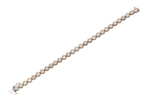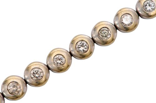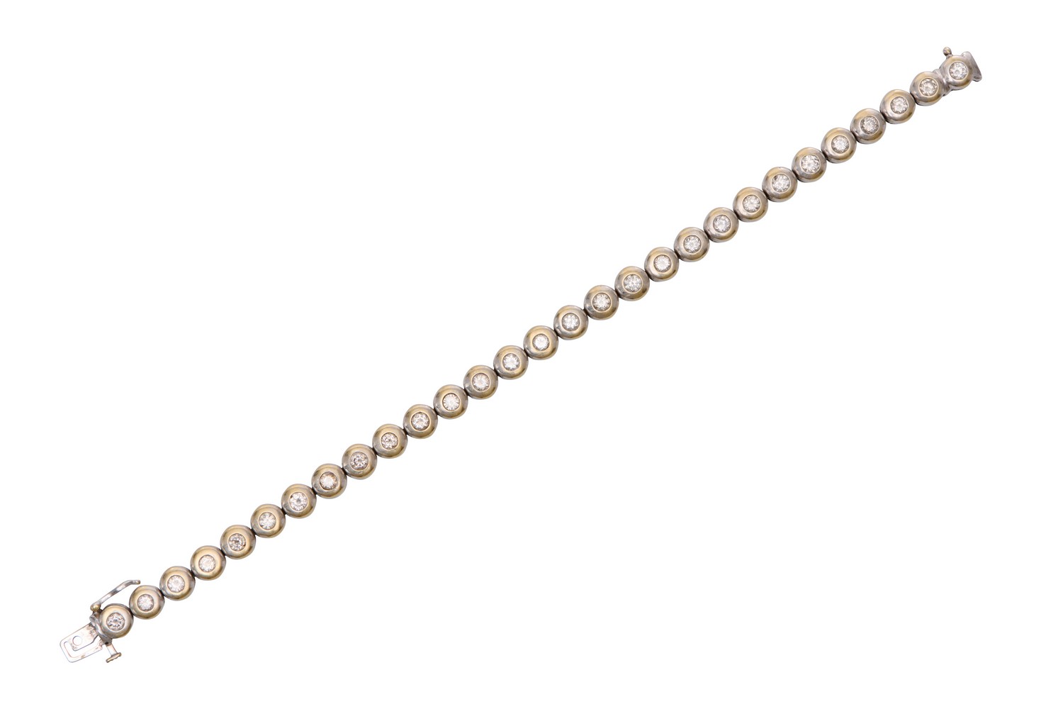 Designed as a line of twenty-nine collet-set round brilliant-cut diamonds together weighing approximately 4.00 carats, length 185mm.