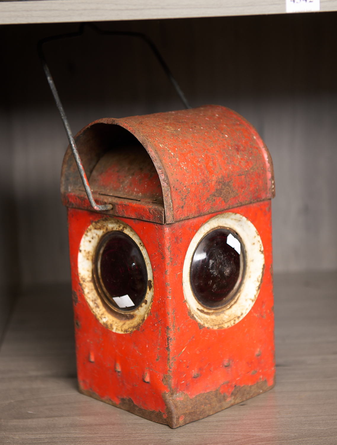 AN INDUSTRIAL METAL RAILWAY LANTERN H.27CM, LEONARD JOEL LOCAL DELIVERY SIZE: SMALL