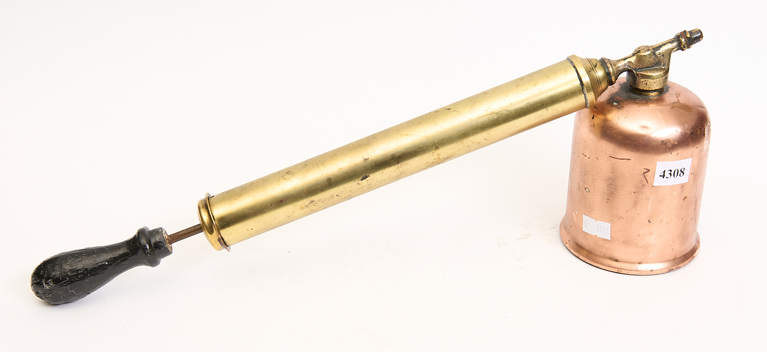 A COPPER AND BRASS SPRAYER L.43CM, LEONARD JOEL LOCAL DELIVERY SIZE: SMALL
