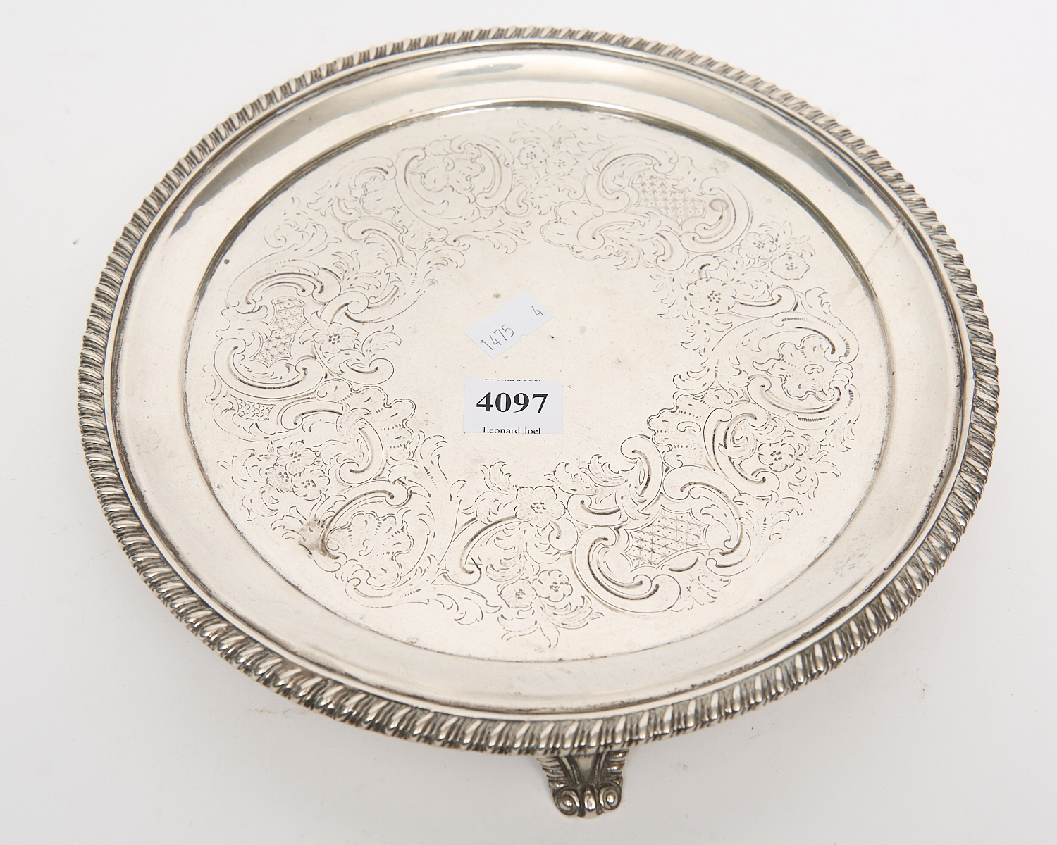 A GEORGIAN STERLING SILVER SALVER, 1815 DIA.23CM, LEONARD JOEL LOCAL DELIVERY SIZE: SMALL