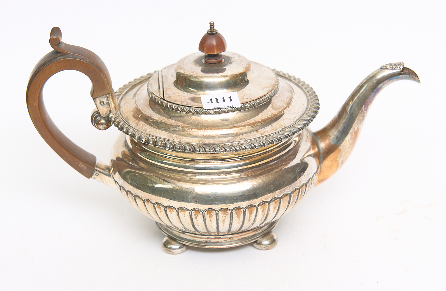 A GEORGIAN SHEFFIELD PLATE TEAPOT, LEONARD JOEL LOCAL DELIVERY SIZE: SMALL