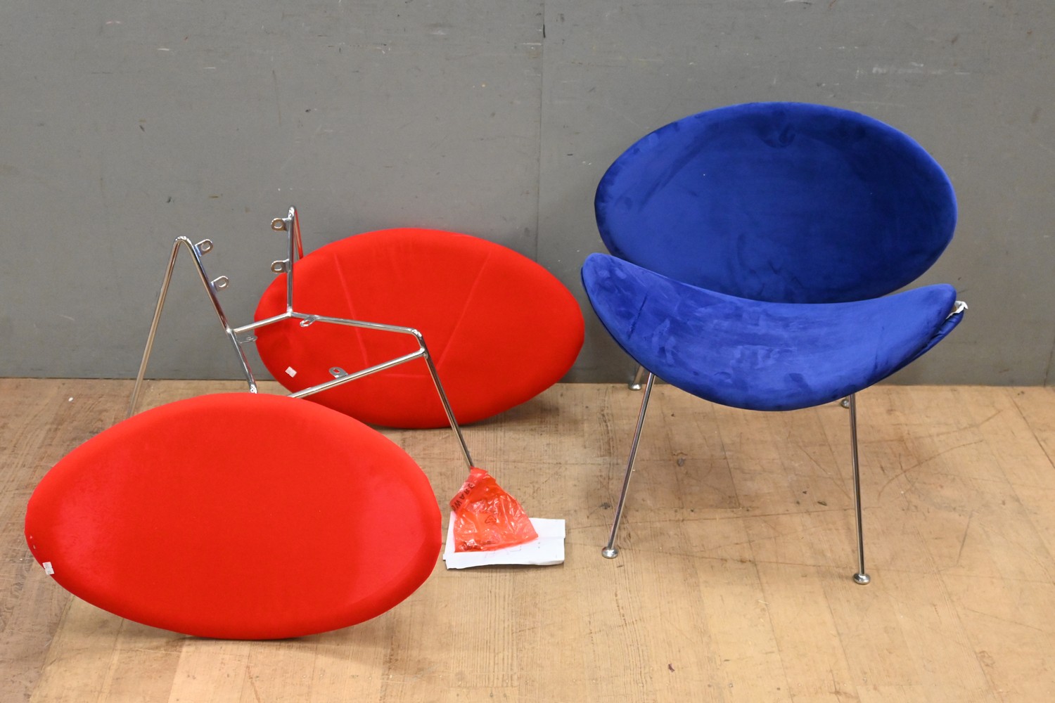 TWO SLICE CHAIRS, ONE RED & ONE BLUE (A/F) (67H x 64W x 51D CM) (LEONARD JOEL DELIVERY SIZE: LARGE)