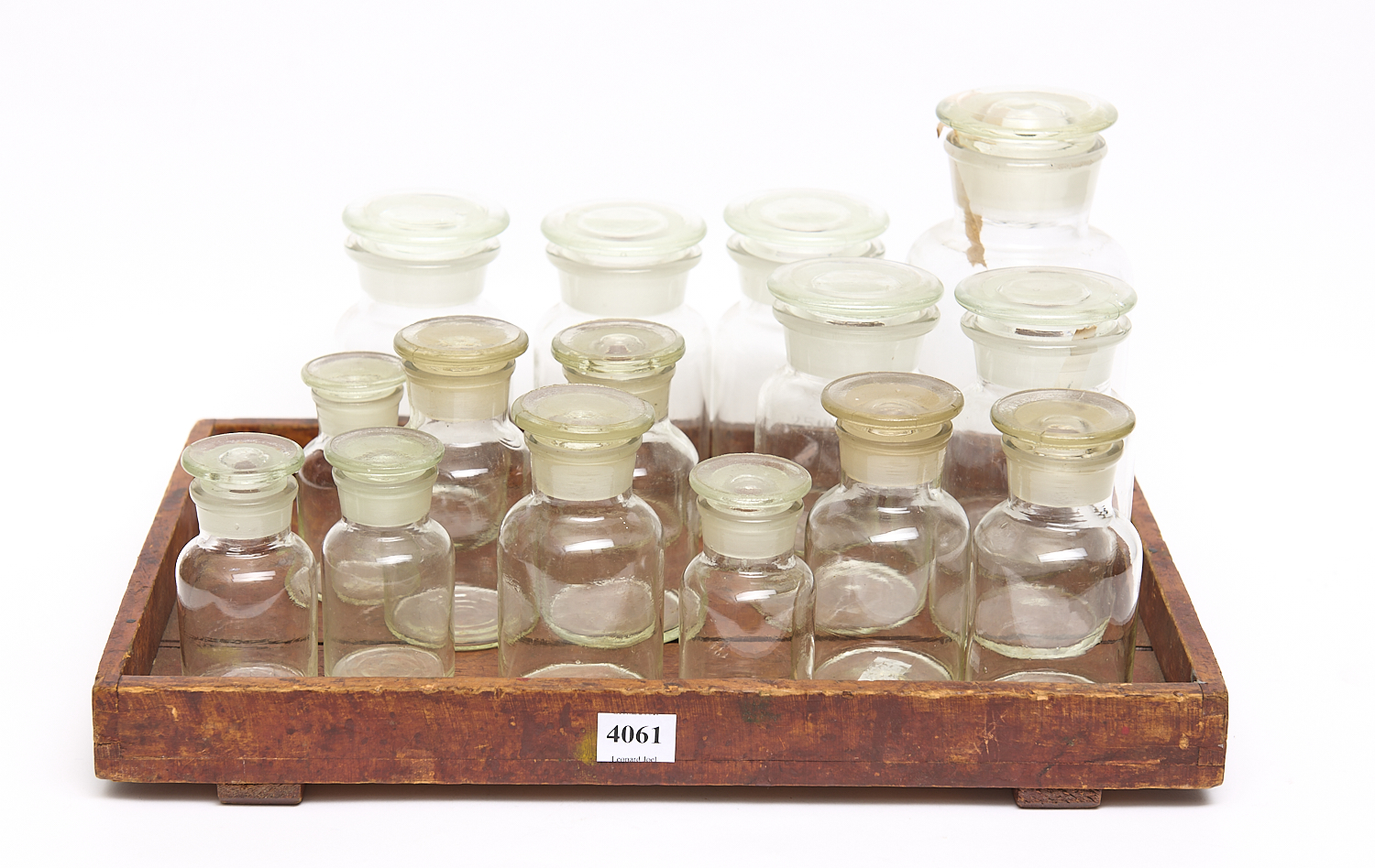 A GROUP OF APOTHECARY JARS ON A WOODEN TRAY, LEONARD JOEL LOCAL DELIVERY SIZE: MEDIUM