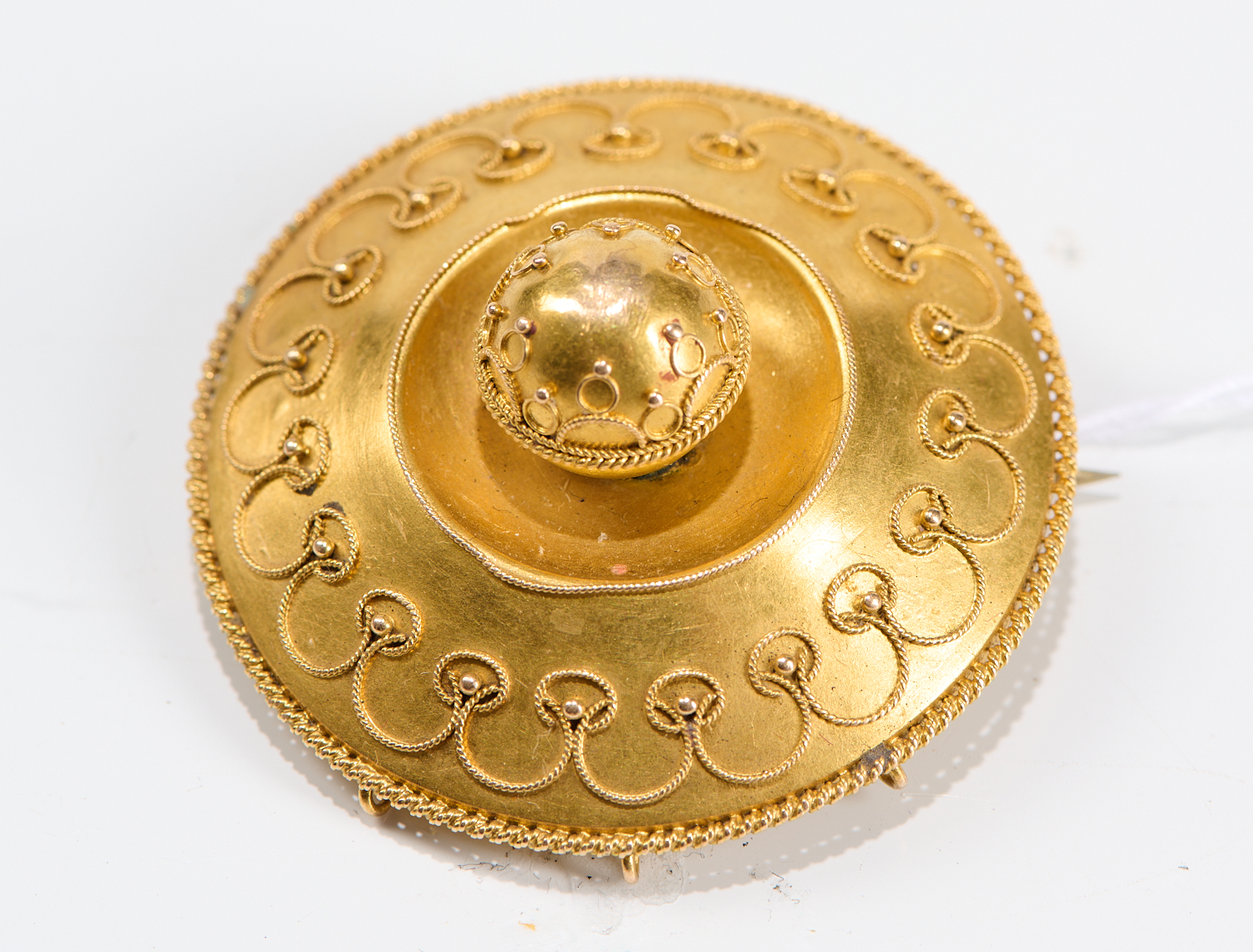A VICTORIAN TARGET BROOCH IN 18CT GOLD, DIAMETER APPROXIMATELY 40MM