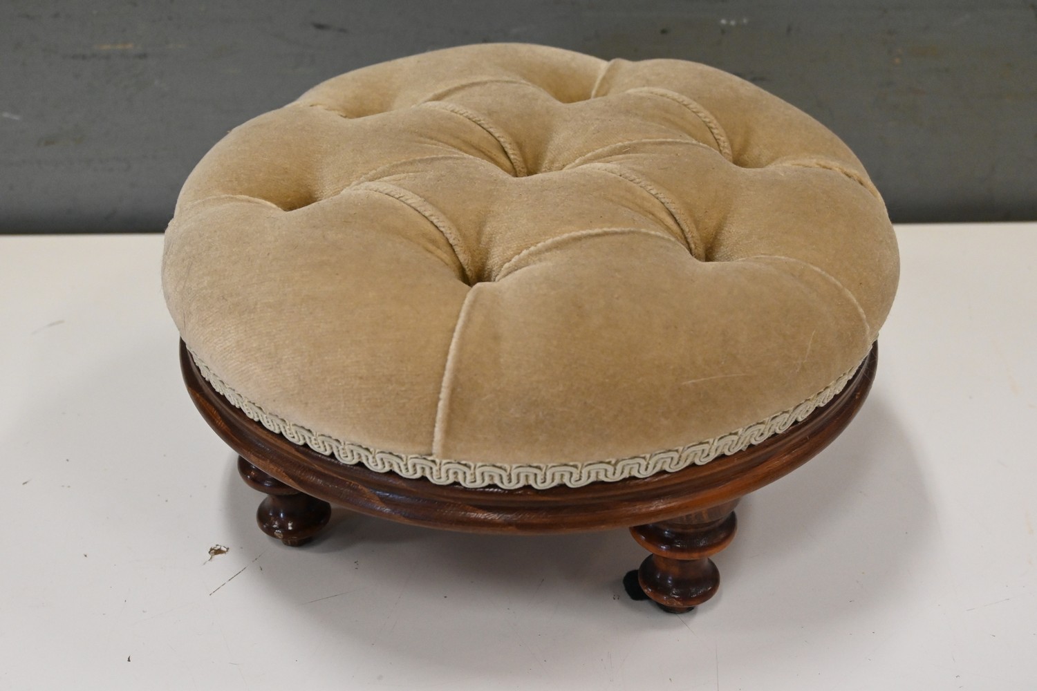 A SMALL UPHOLSTERED FOOTSTOOL (15H x 31D CM) (LEONARD JOEL DELIVERY SIZE: SMALL)