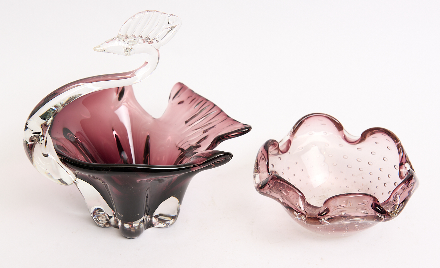 TWO MURANO ART GLASS BOWLS IN VIOLET H.20CM, LEONARD JOEL LOCAL DELIVERY SIZE: MEDIUM