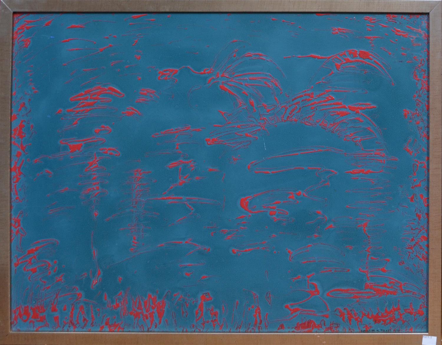 CHRISTINE A. PECKET, UNTITLED (ABSTRACT) 1970, OIL ON BOARD, 53.5 X 70CM