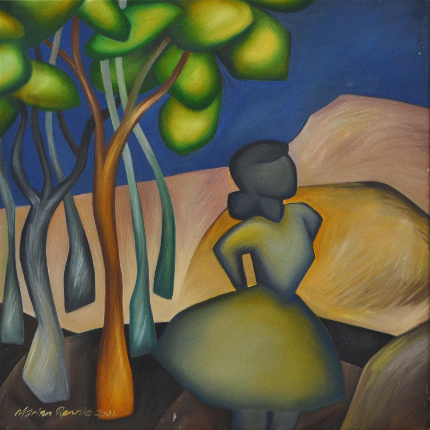 MARIAN RENNIE, SILHOUETTE 2001, OIL ON CANVAS, 45.5 X 45.5CM, CONDITION: MINOR WEAR TO EDGES OF CANVAS
