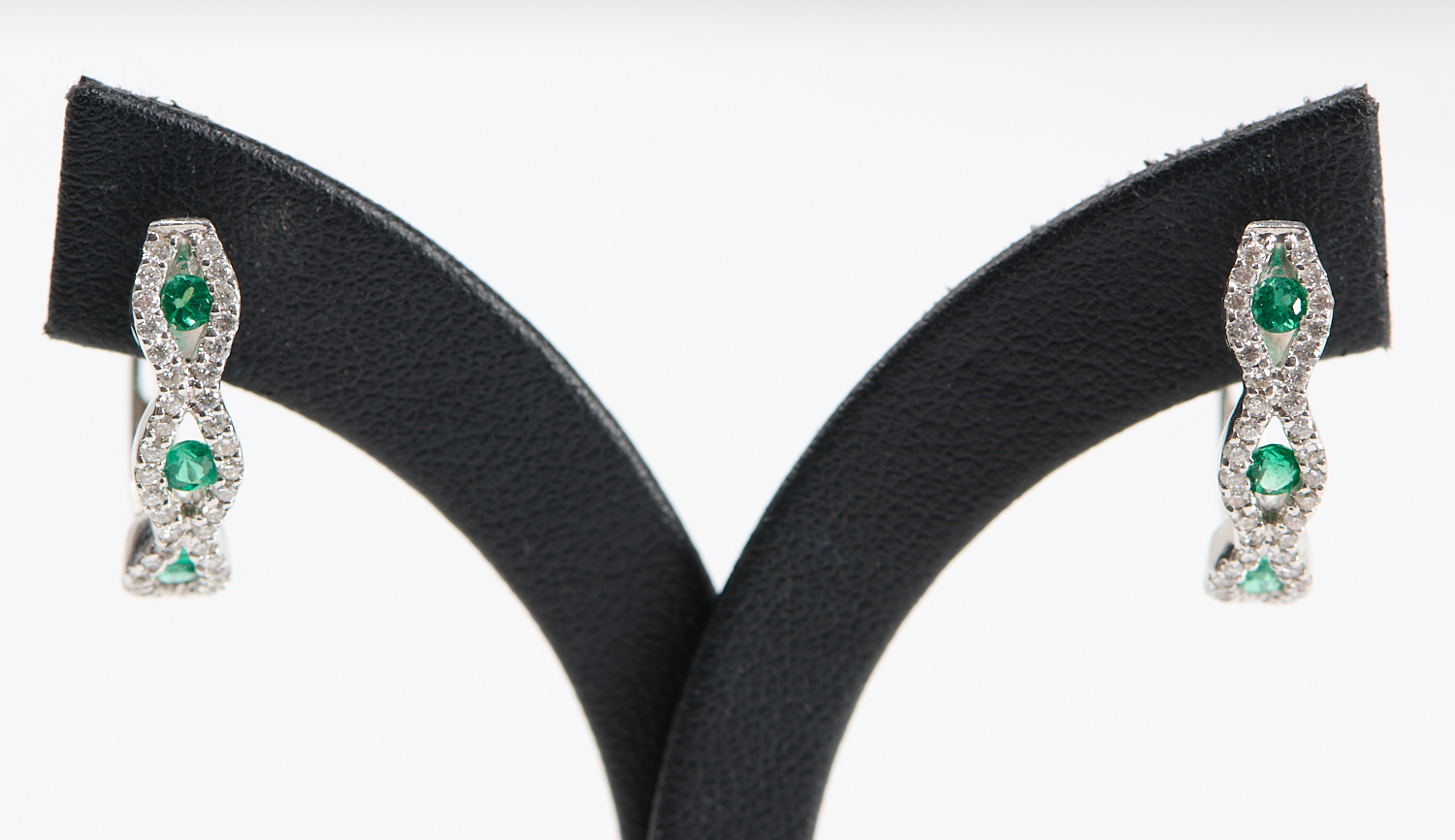 A PAIR OF EMERALD AND DIAMOND HOOP EARRING IN 18CT WHITE GOLD