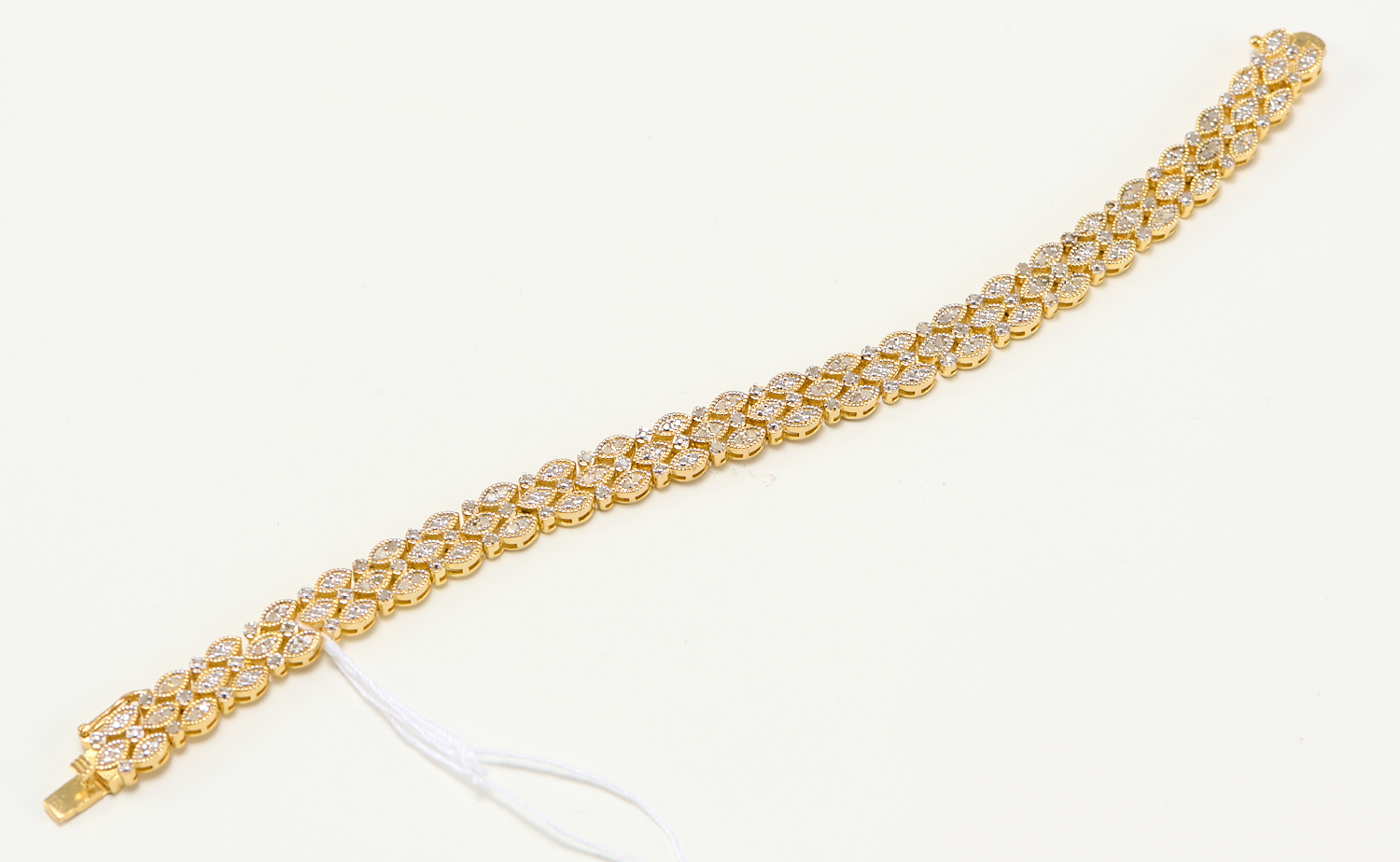 A DIAMOND SET FANCY BRACELET IN 18CT GOLD, LENGTH APPROXIMATELY 185MM, 19.8GMS