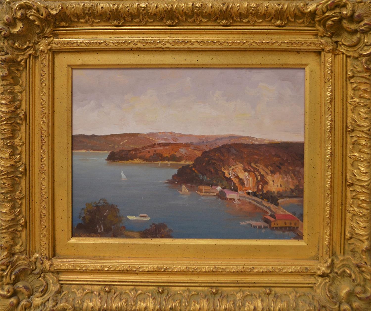 EMIL BEDNES, COASTAL VIEW, OIL ON BOARD, 28 X 38.5CM