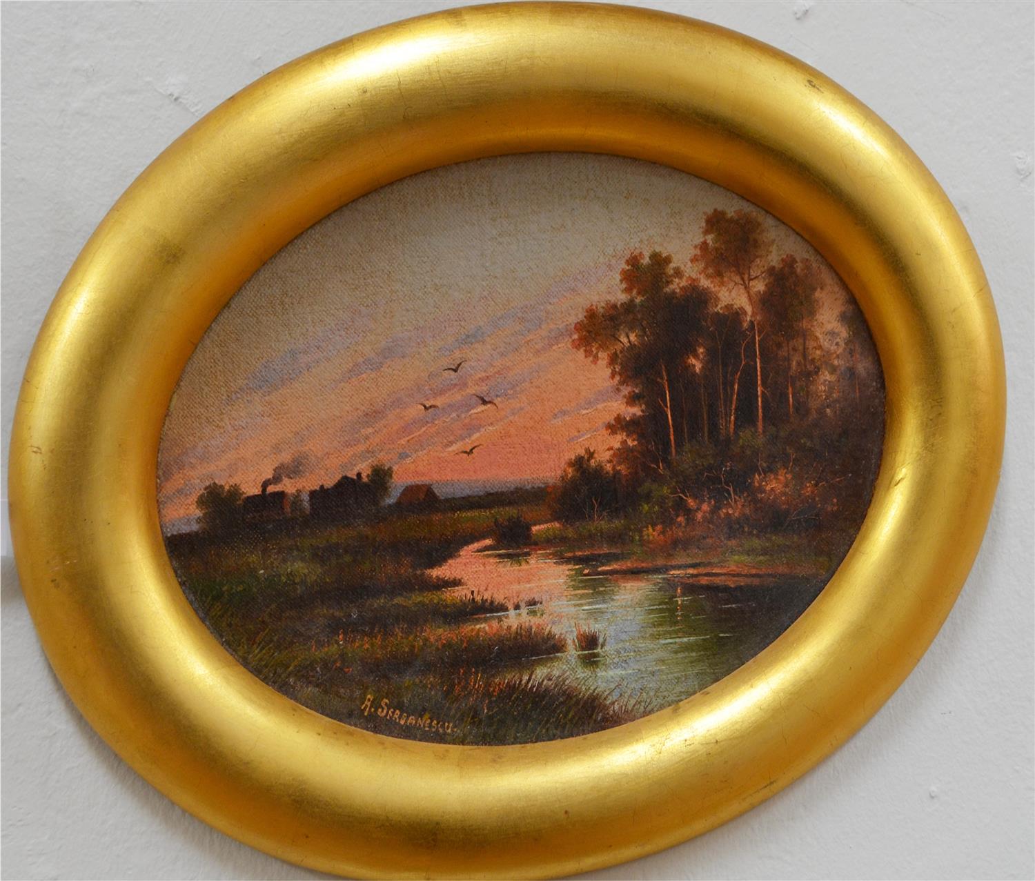 A. SERBANESCU, UNTITLED (SUNSET), OIL ON BOARD, 19 X 26CM (TONDO)