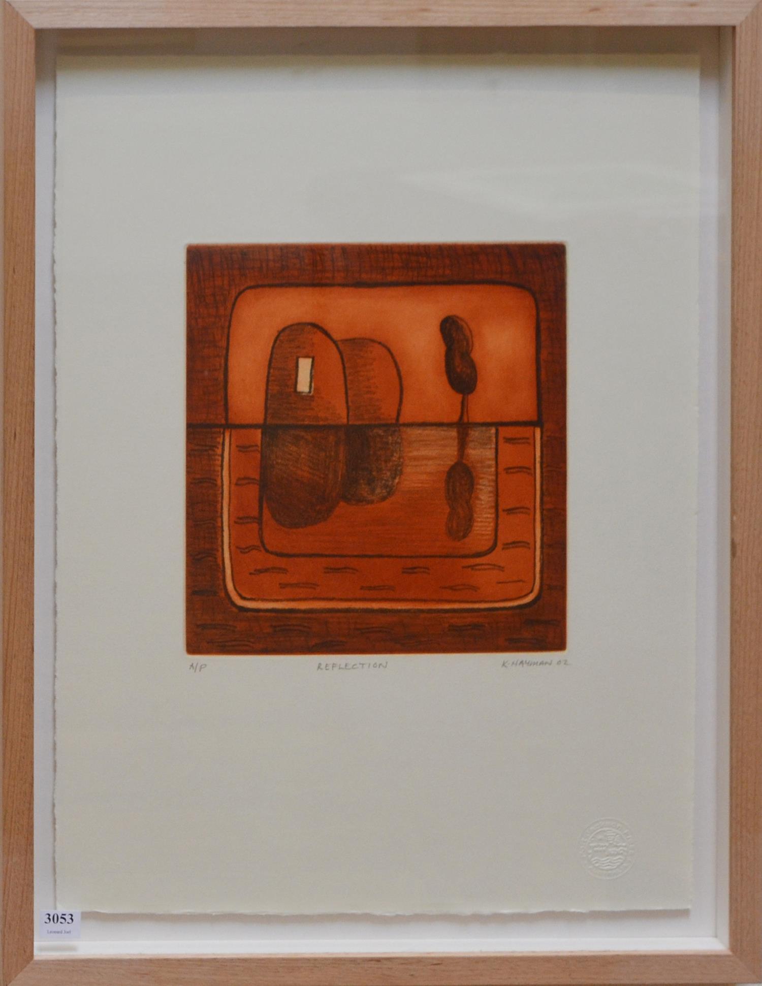 KAREN HAYMAN, REFLECTION 2002, COLOURED ETCHING A/P, 25.5 X 23CM