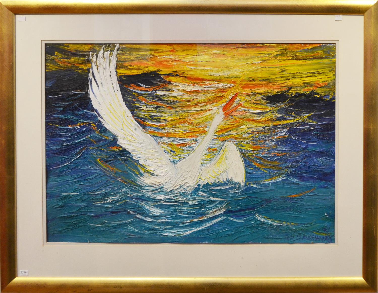 PETER ANDRIANAKIS, UNTITLED (SWAN) 1998, OIL ON PAPER, 65 X 94CM. CONDITION: OVERALL GOOD, HOWEVER SLIGHT BUCKLING TO PAPER AROUND EDGES