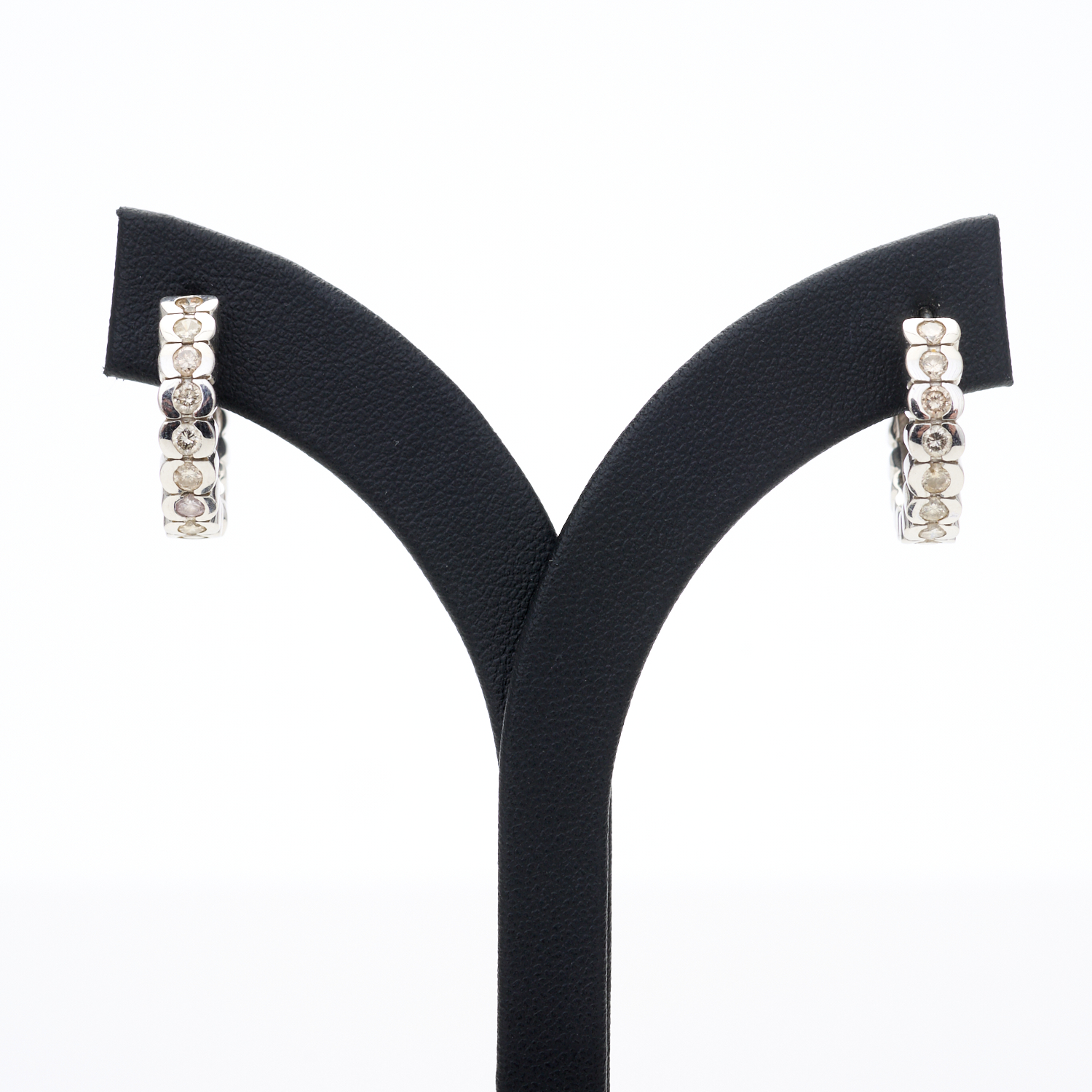 A PAIR OF DIAMOND HOOP EARRINGS IN 18CT WHITE GOLD, TO POST AND LEVER BACK FITTINGS, 10.02GMS