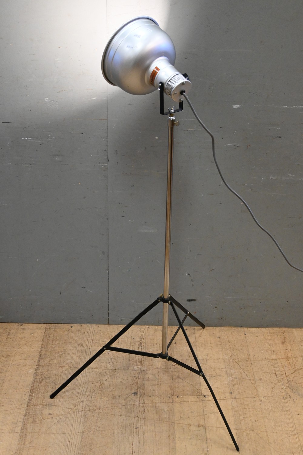 A METAL AND CHROMED ALUMINIUM SHADE STANDARD LAMP - BARTON SYDNEY (135H CM) (LEONARD JOEL DELIVERY SIZE: LARGE)