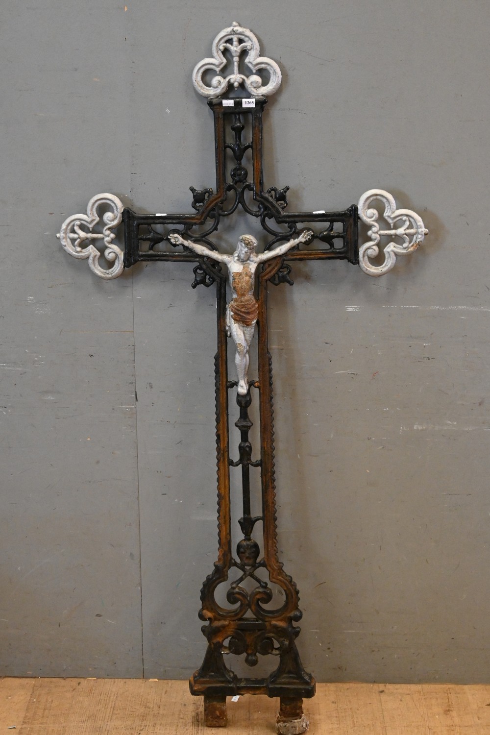 A LARGE 19TH CENTURY HEAVY CAST IRON RELIGIOUS CROSS WITH CENTRAL JESUS (158H x 78W CM) (PLEASE NOTE THIS HEAVY ITEM MUST BE REMOVED BY CARRIERS AT THE CUSTOMER'S EXPENSE. LEONARD JOEL STAFF CANNOT ASSIST CARRYING THIS ITEM) (X-LARGE ITEM)