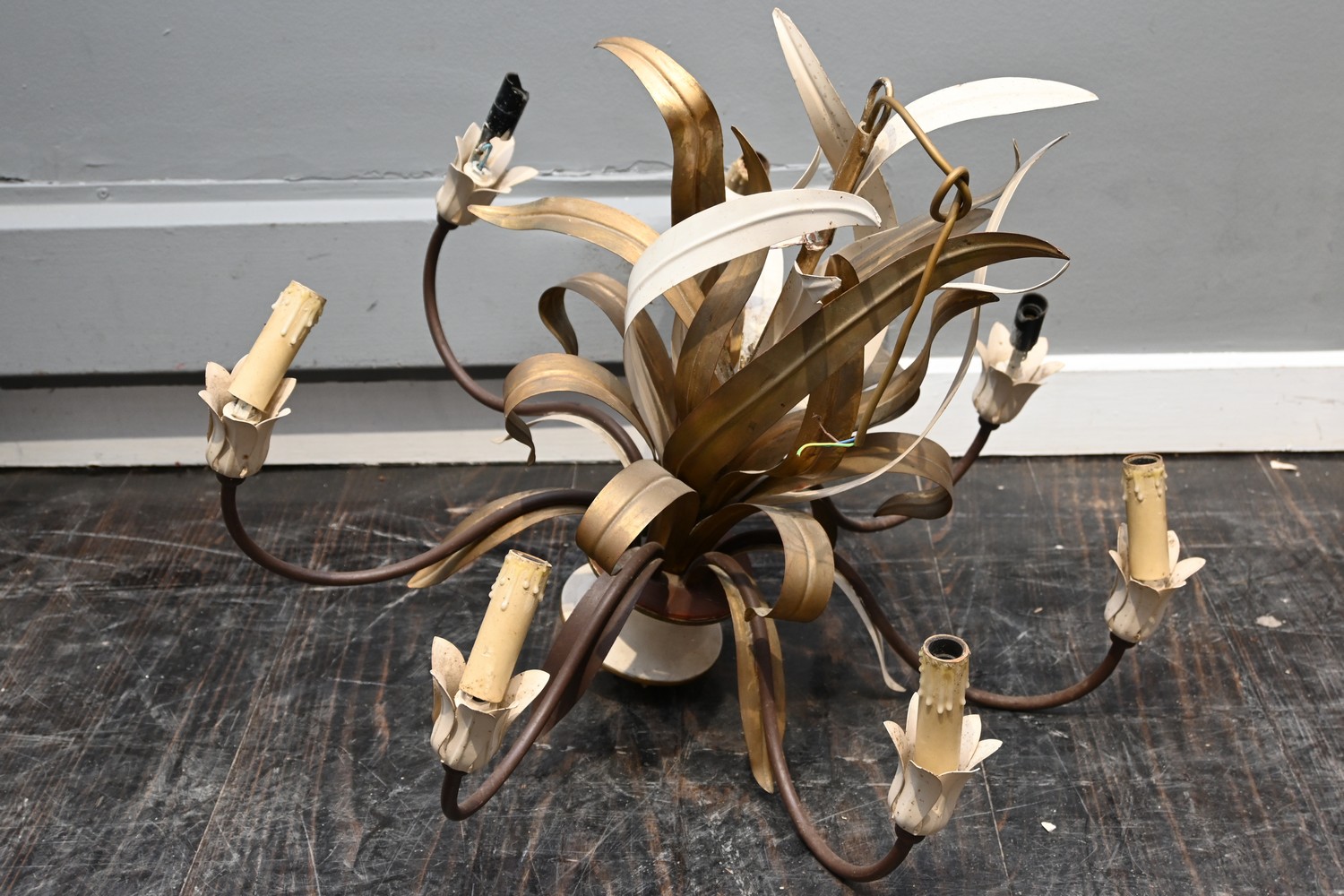 MID CENTURY FRENCH LEAF CHANDELIER, C.1960'S (A/F) (60H x 66D CM) (LEONARD JOEL DELIVERY SIZE: LARGE)