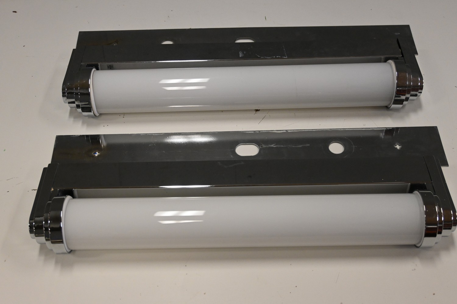PAIR OF ITALIAN CHROMED ART DECO STYLE WALL SCONCES, EX HOTEL INTER CONTINENTAL PARIS (A/F) (54W CM) (LEONARD JOEL DELIVERY SIZE: LARGE)