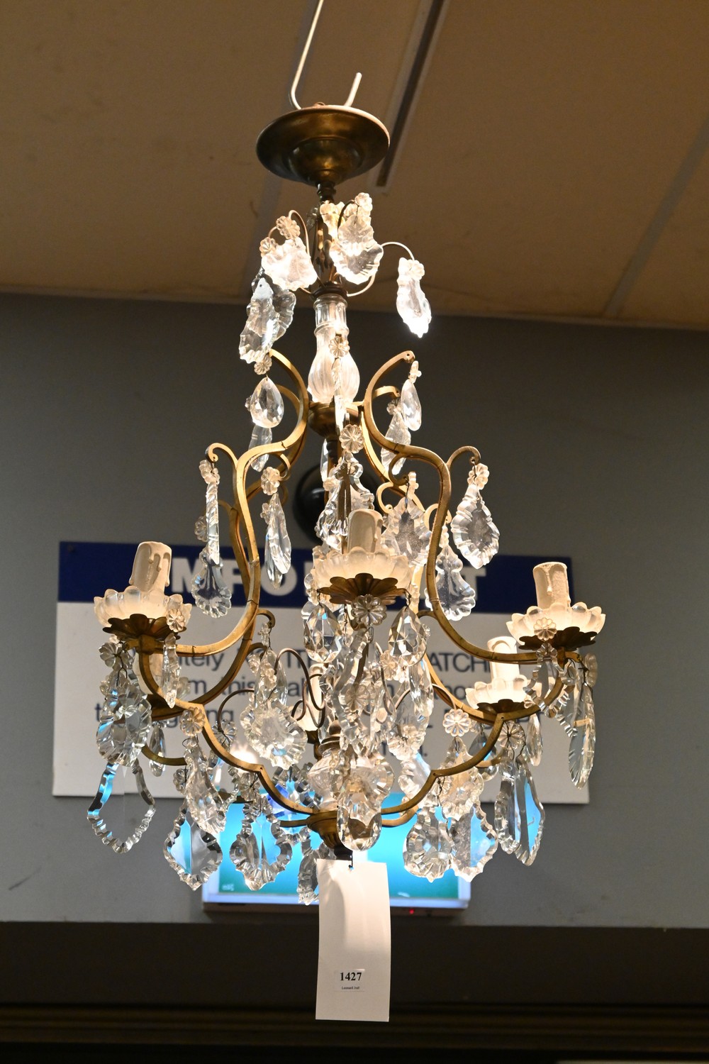 19TH CENTURY FRENCH LOUIS XV BRONZE & CRYSTAL CUT CHANDELIER (82H x 48D CM) (LEONARD JOEL DELIVERY SIZE: LARGE)